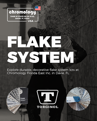 If you’re a flooring professional in South Florida looking to deliver durable, high-impact, and visually striking floors, flake systems remain one of the most proven and profitable solutions on the market. They combine performance, slip resistance, and design flexibility into a single system – and when it comes to availability, quality, and support, no one stocks flake systems like Chromology Florida East Inc.